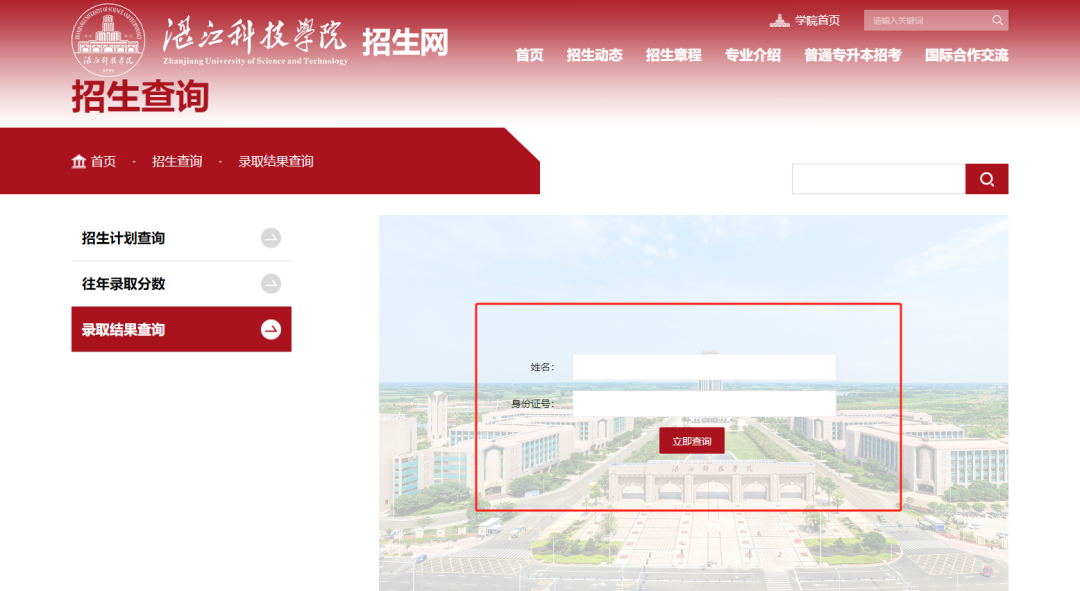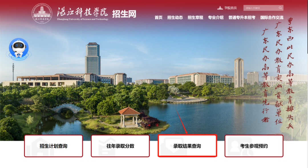 ① 进入湛江科技学院招生网:zs.zjkju.edu.cn