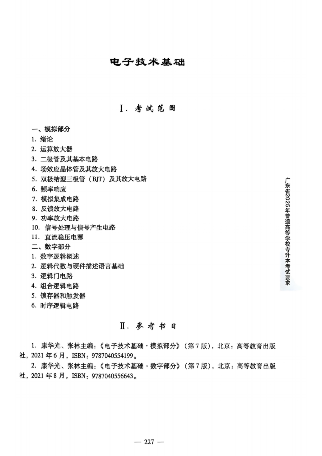 广东专插本为备考广东专升本的学子整理汇总了2025年广东专升本电子技术基础考纲,供各位同学参考学习,更多内容详细见下。