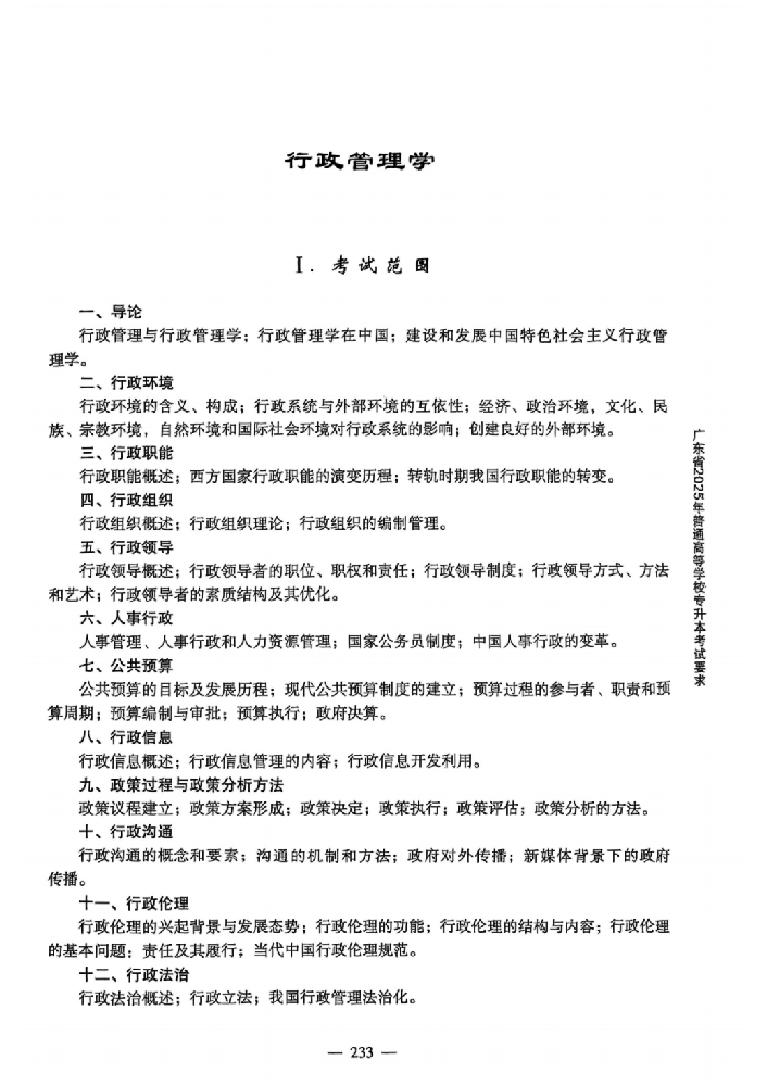 2025年广东专插本行政管理学考纲
