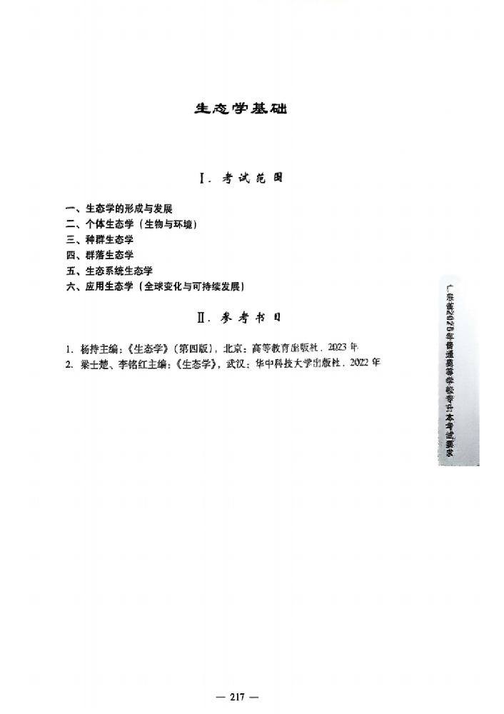 2025年广东专插本生态学考纲