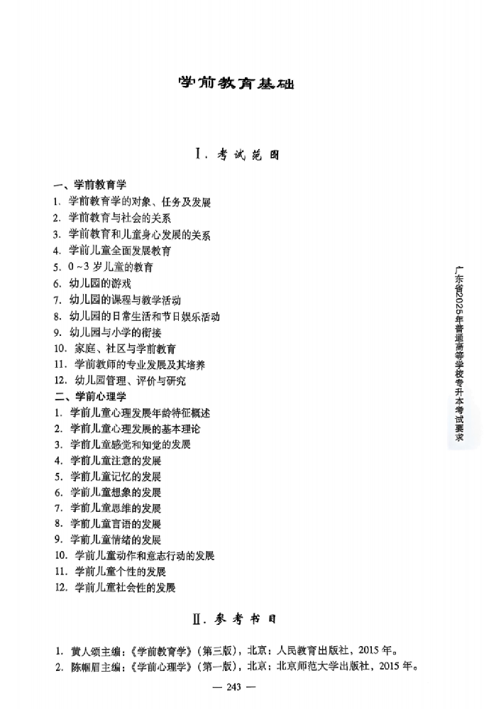 广东专插本针为备考广东专升本的学子整理汇总了广东专升本2025年学前教育基础考纲,更多内容详细见下。