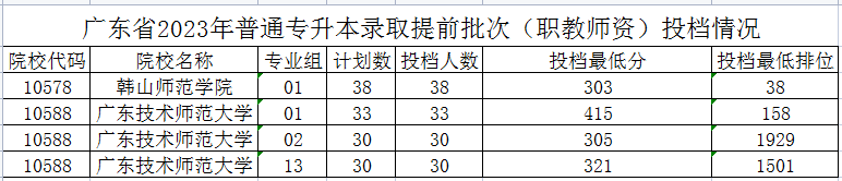 1.2023年普通专升本提前批次(职教师资)投档情况