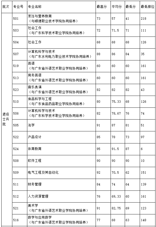 | 普通批 | 韩山师范学院 | 商务英语 | 378 | 381 | 48 | 文学 | 大学语文 | 统考 | 英语基础与写作 | 5190 | 1700-1800 | 广东科学技术职业学院珠海校区 |