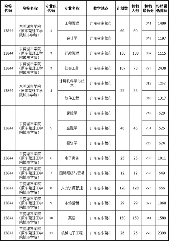 2021年-2024年东莞城市学院专升本分数线及排位汇总!