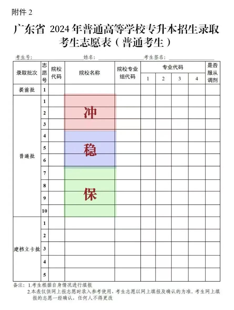 2、志愿数量:提前批(职教师资类专业)设置1个院校专业组志愿,普通批设置10个院校专业组志愿,建档立卡批次设置5个院校专业组志愿。每个院校专业组最多可填报4个专业志愿及1个是否服从调剂选项。