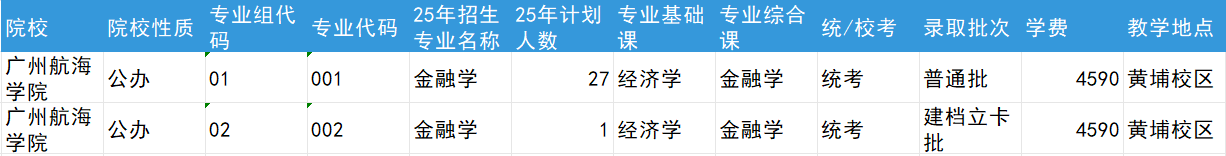 | 广州航海学院 | 金融学 | 1 | 1 | 325 | 85 | 经济学 | 金融学 | 建档立卡批 | 4590 |