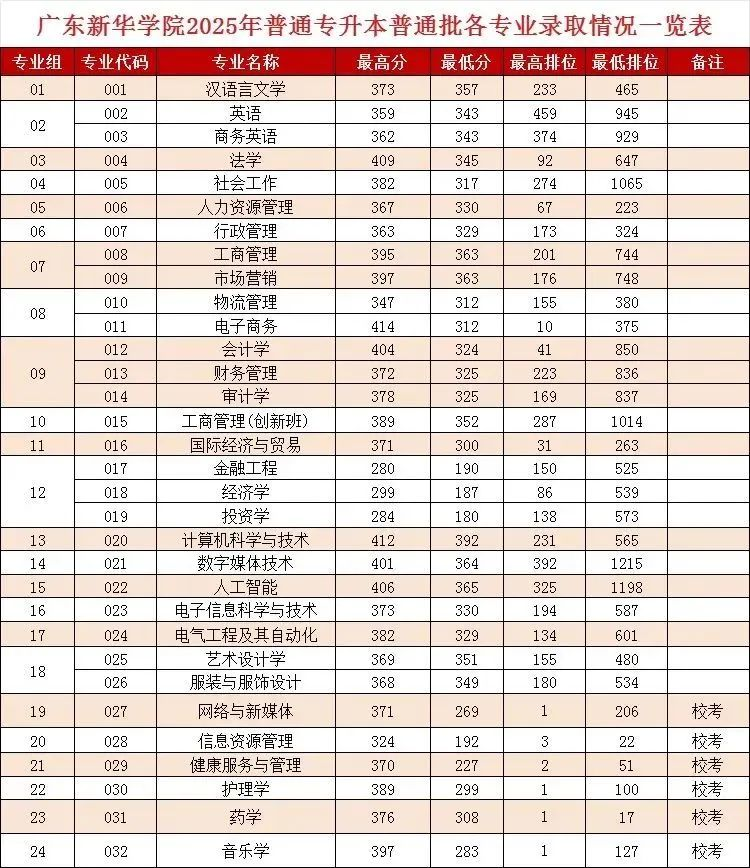 广东专插本为备考广东专插本的考生整理了广州新华学院2025年专插本投档情况,更多内容详细见下。