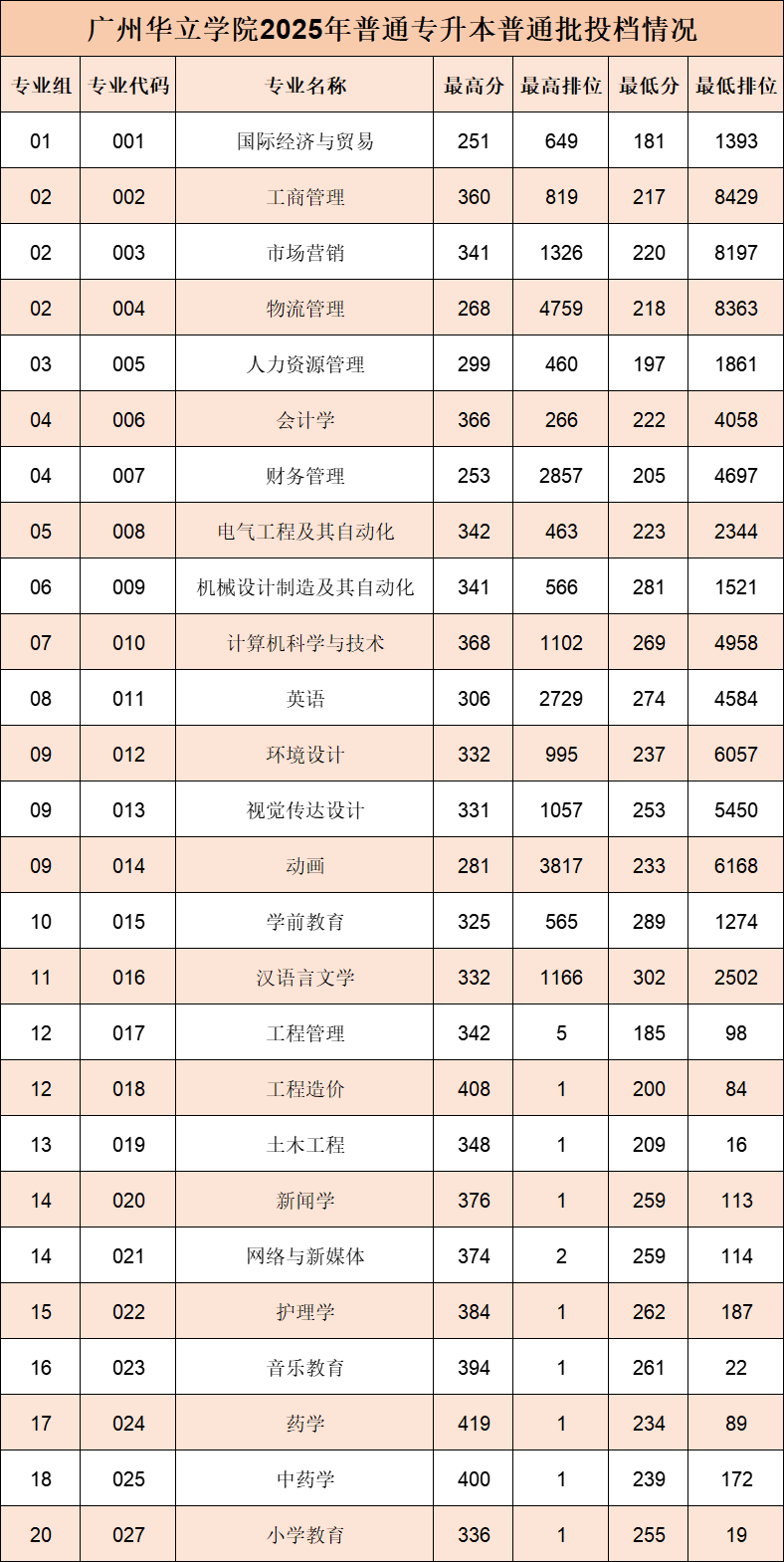 广东专插本为备考广东专插本的考生整理了广州华立学院2025年专插本投档情况,更多内容详细见下。