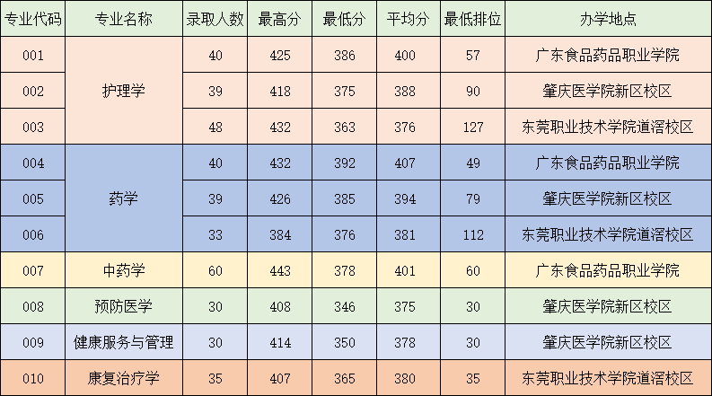 护理学、药学等专业录取分数 294-323 分,适合专科阶段就读合作院校(如东莞职业技术学院)的考生,竞争压力最小。