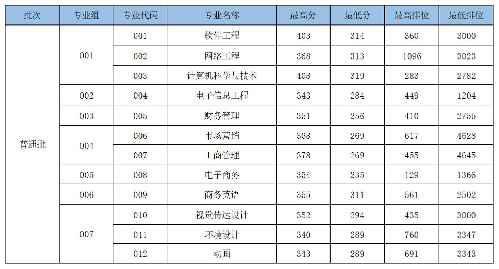 投档情况 普通类录取最低分数及排位如下: