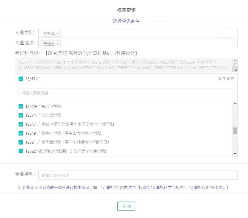 二、查询专业,选择好符合自己的批次和报考的考试科目