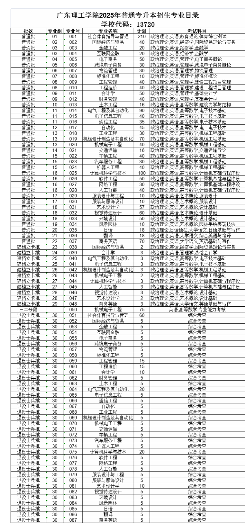 广东专插本为备考广东专升本的学子整理了2025年广东理工学院专插本招生计划,更多内容详细见下。