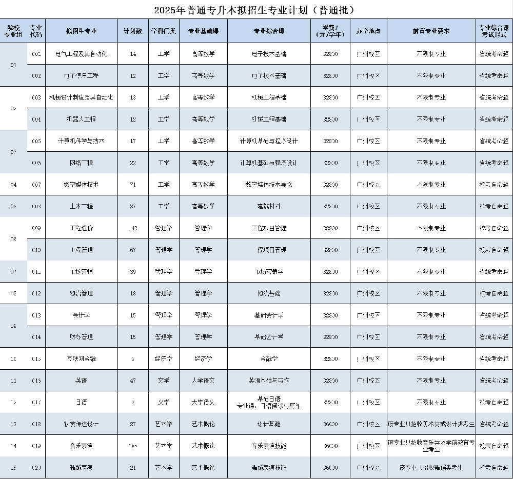 广东专升本为备考广东专升本的学子整理了广州理工学院2025年专升本招生计划,更多内容详细见下。