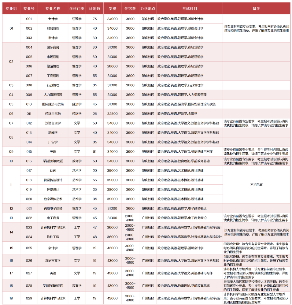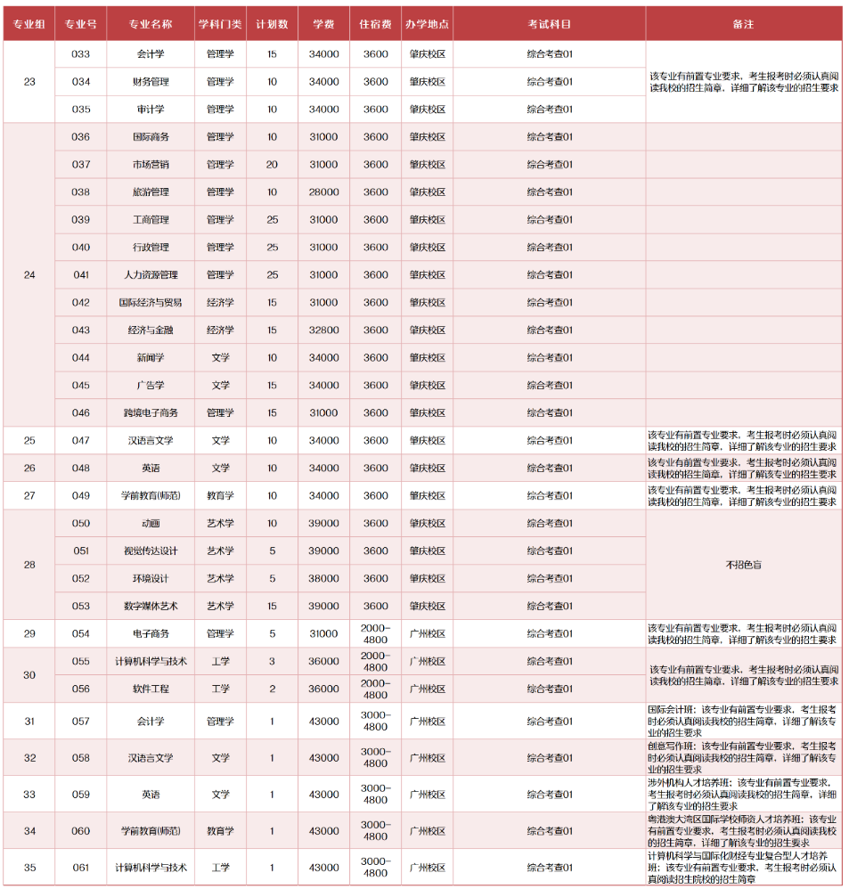 1.以上招生专业、专业组代码、招生计划数、收费标准及录取批次等以广东省招生办公室公布的《广东省2025年普通高等学校专升本招生专业目录》为准。