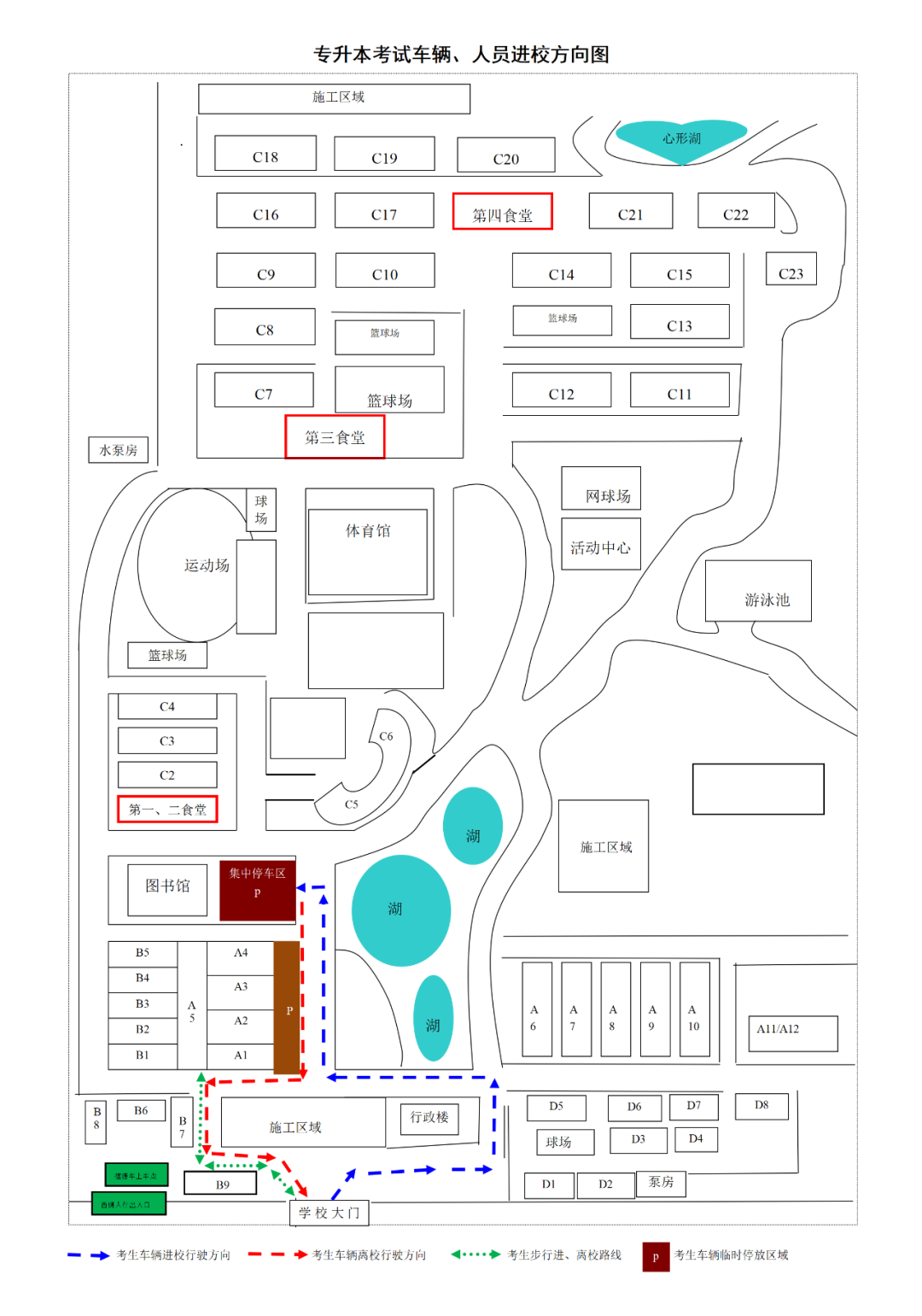 各位考生注意查收,请务必自主搜寻考场的具体位置,以免浪费时间在不必要的赶路中。有条不紊地进入考场,保持间隔、不要扎堆,注意接收考试信号,届时会有志愿者在考场入口以及行李寄放处引导.请各考生按照现场工作人员的指引,有序进入考场.以下附上通往考场的最佳通道: