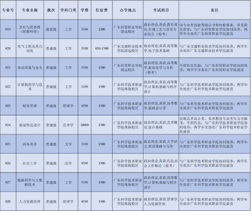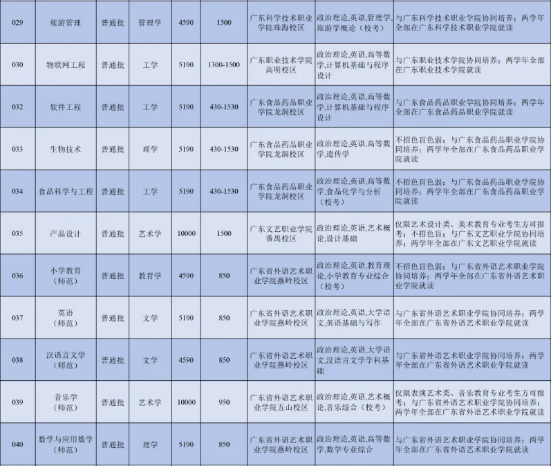 2025年广东普通专升本(专插本)39所招生院校有3所院校存在联合培养专业,分别是广东医科大学、韶关学院、韩山师范学院。其中,广东普通专升本普通批联合培养专业如下。