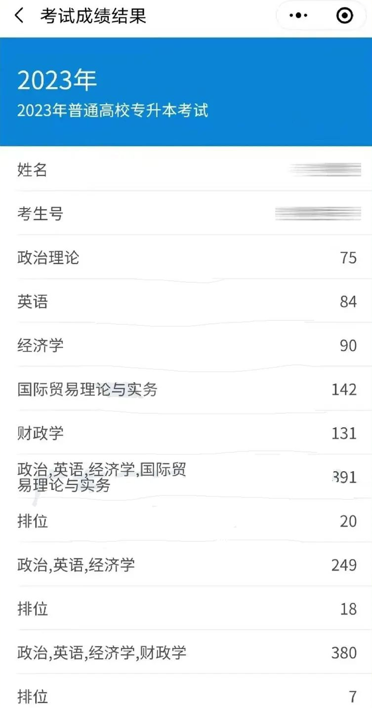 查询到成绩,对成绩的一些结果如何理解?参考2024年的成绩查询结果,查询结果会有各科成绩,前三科总分、统考四科总分、校考四科总分(如果同时参加校考),统考排位、校考排位等信息。