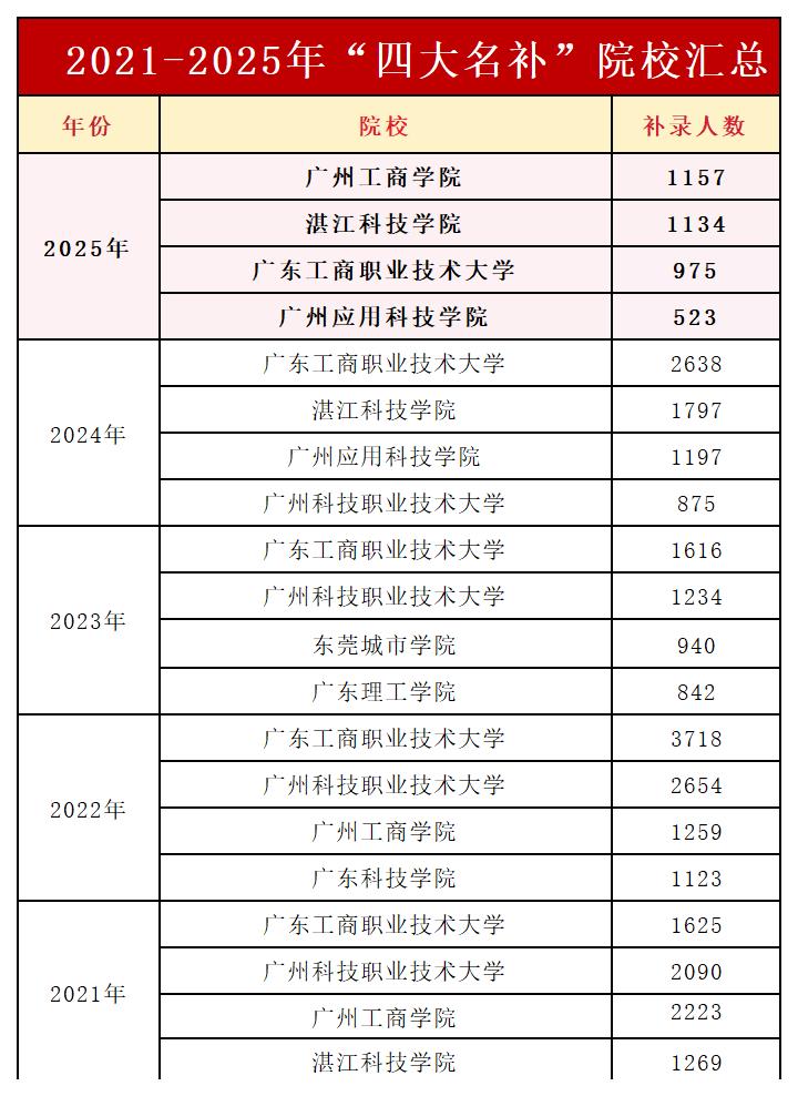 此前常被提及 “四大名补”的广州科技职业技术大学此次未进入今年名单。