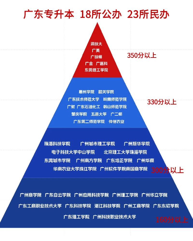广东普通专升本招生学校共41所,其中18所民办、23所公办