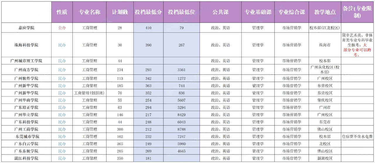 广东专插本根据今年的最新招生情况,整理了【可跨专业报考】+【容易上手】的管理学类专业院校供大家参考!