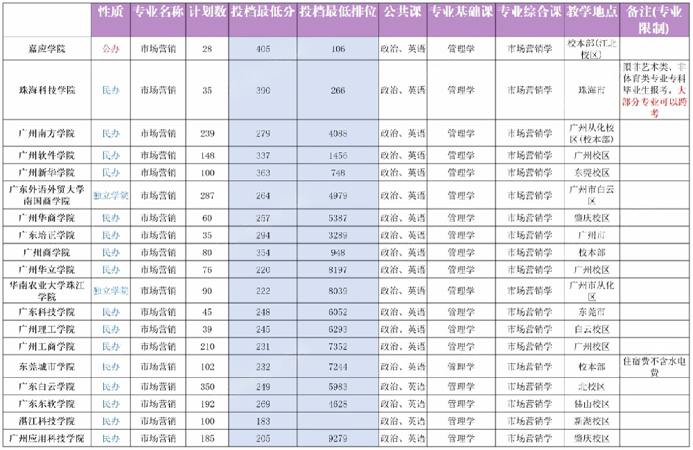 聪明的你会发现,市场营销、工商管理和旅游管理(部分)专业的考试科目都是【政治、英语、管理学和市场营销学】。没错,只要你复习和报考这4科,填报志愿时,就可以选择市场营销、工商管理和旅游管理(部分)专业。跨专业首选中的首选~