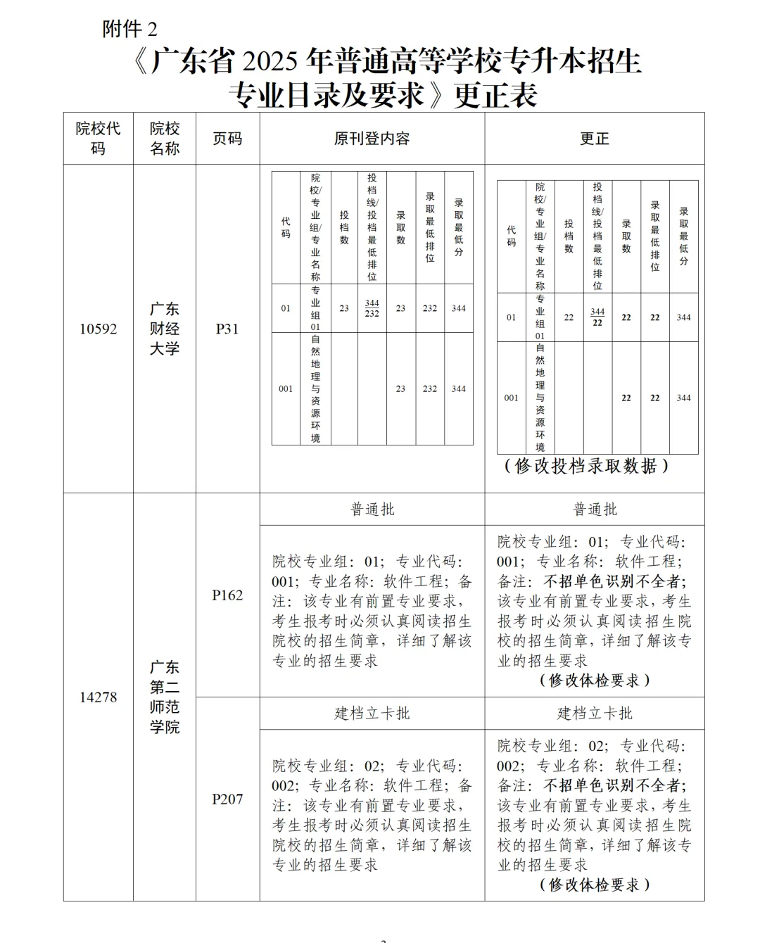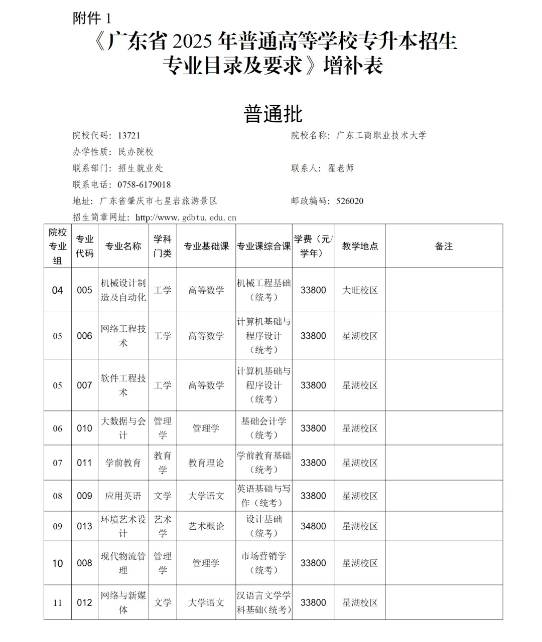 应有关高校要求,现对《广东省2025年普通高等学校专升本招生专业目录及考试要求》部分内容作如下增补及更正。共有三个院校增加了专插本招生专业,分别是广东财经大学、广东第二师范学院和广东工商职业技术大学。