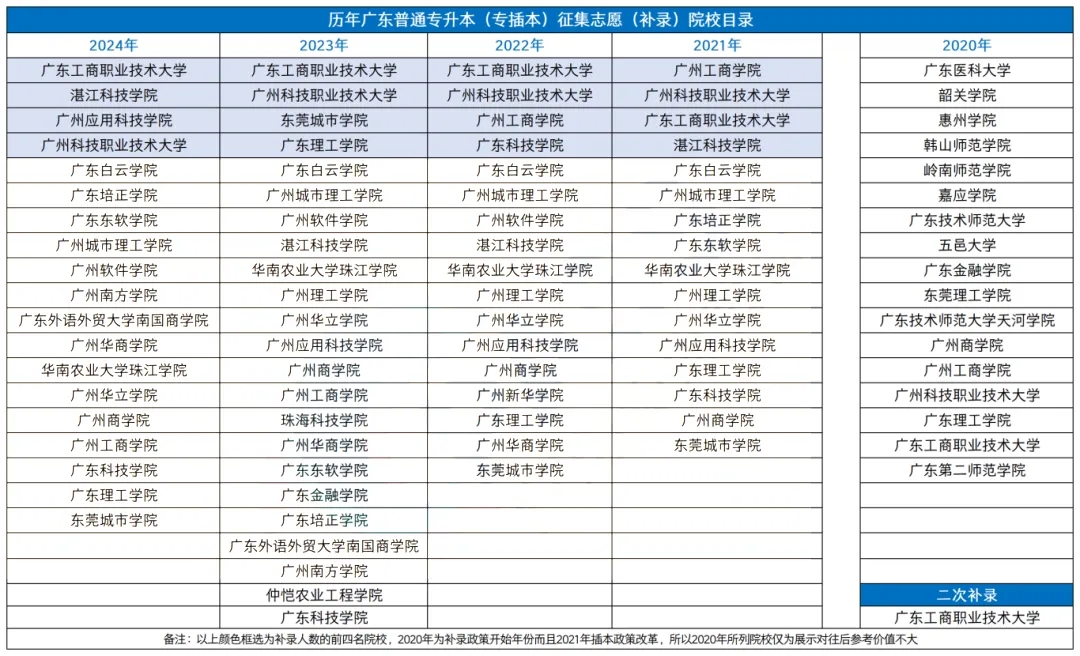 广东专升本为备考广东专升本的学子整理了2024年广东普通专升本补录最低分以及历年补录院校,更多内容详细见下。